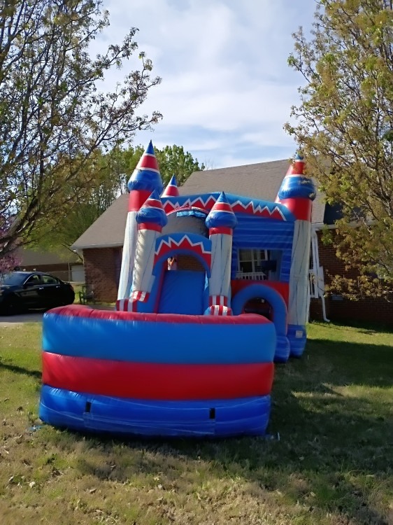 This red, white, and blue combo inflatable is a popular choice for kids ages 5–13 and works great for birthdays, school events, church gatherings, and backyard parties. With plenty of room for jumping and active play, it keeps kids entertained for hours. This unit can be used dry or upgraded to a wet option for an additional $50, making it a flexible inflatable rental for a wide range of events.